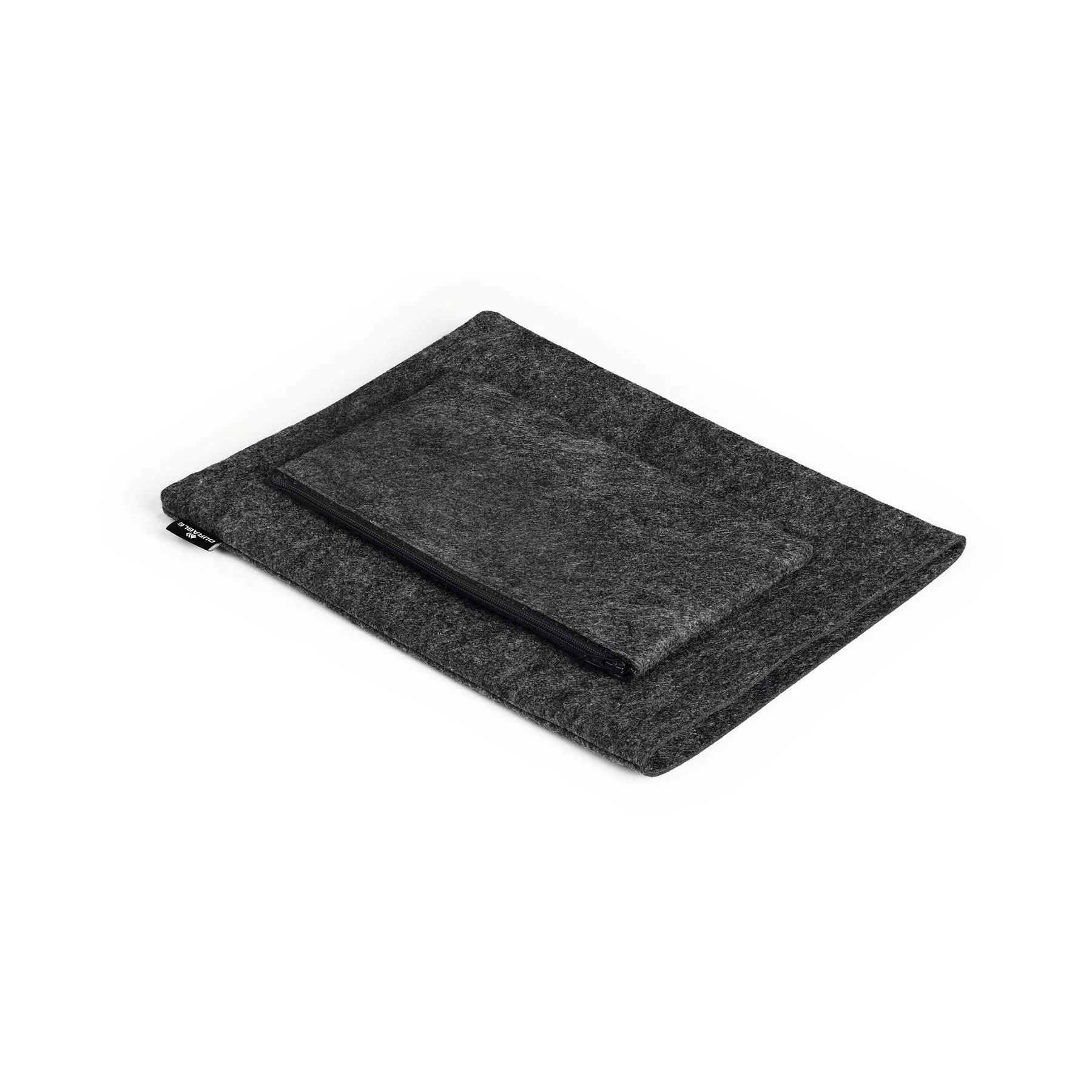 Защитен калъф за таблети или лаптопи, изработен от 60% рециклиран PET филц, комбиниран с допълнителна чанта за аксесоари.