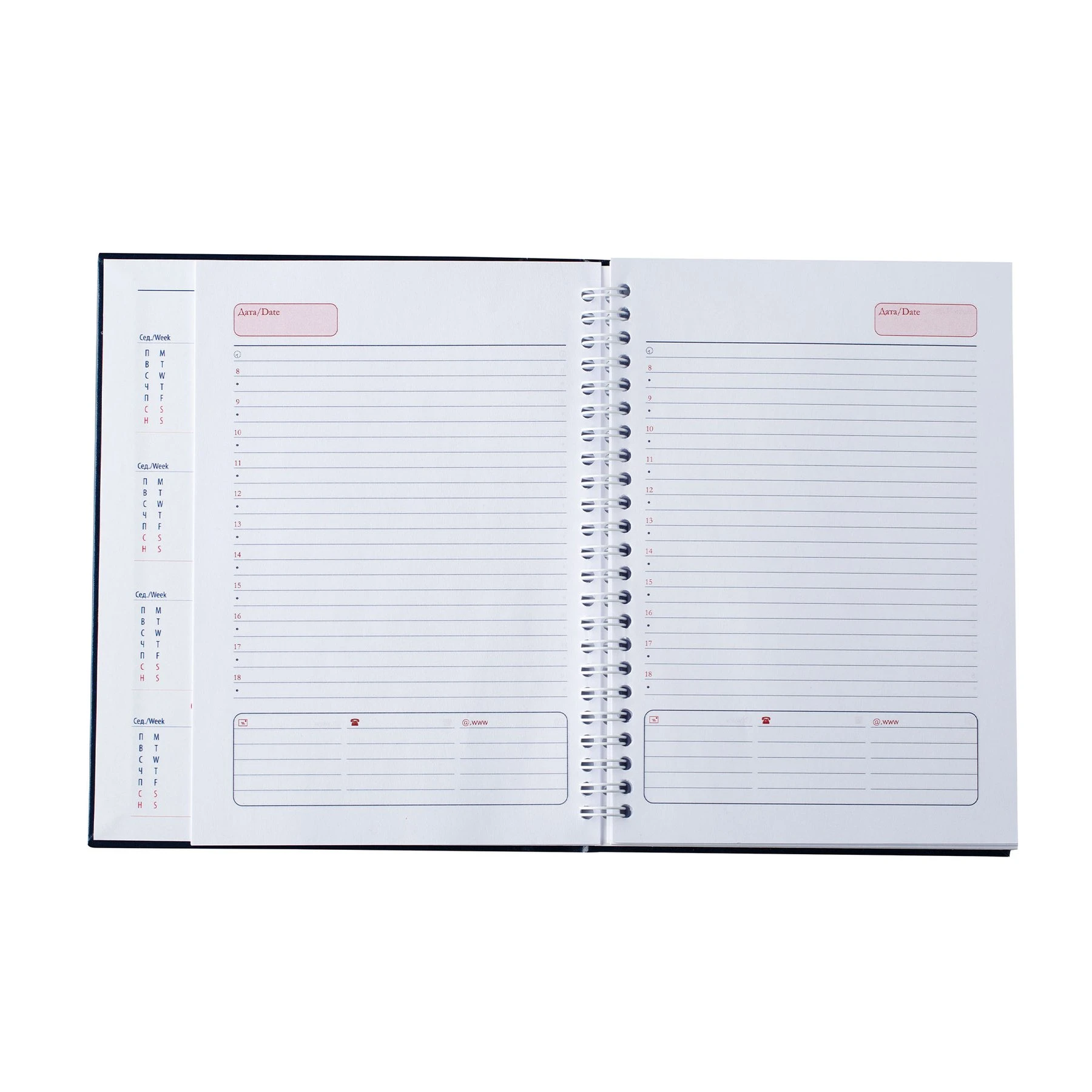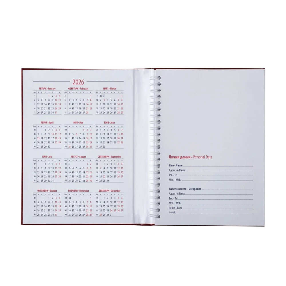 Календар и бележник в едно с твърда корица.
