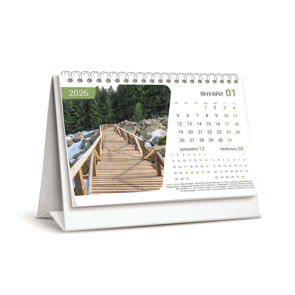Календар Гледки от България, тип пирамида, 15 х 21 cm, A5, 12 страници, за 2026 година
