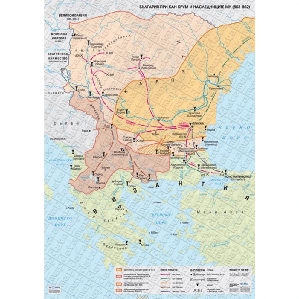 Карта България при хан Крум и наследниците му