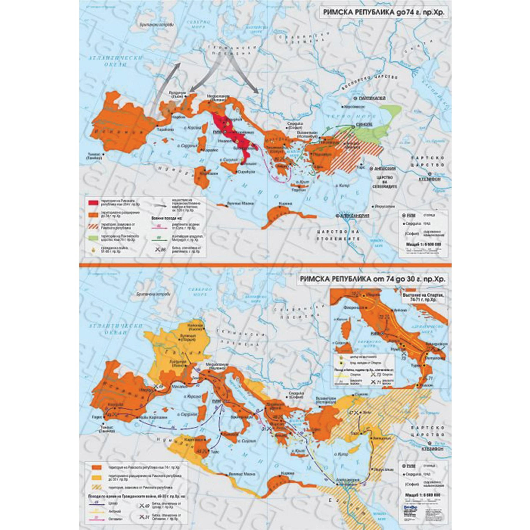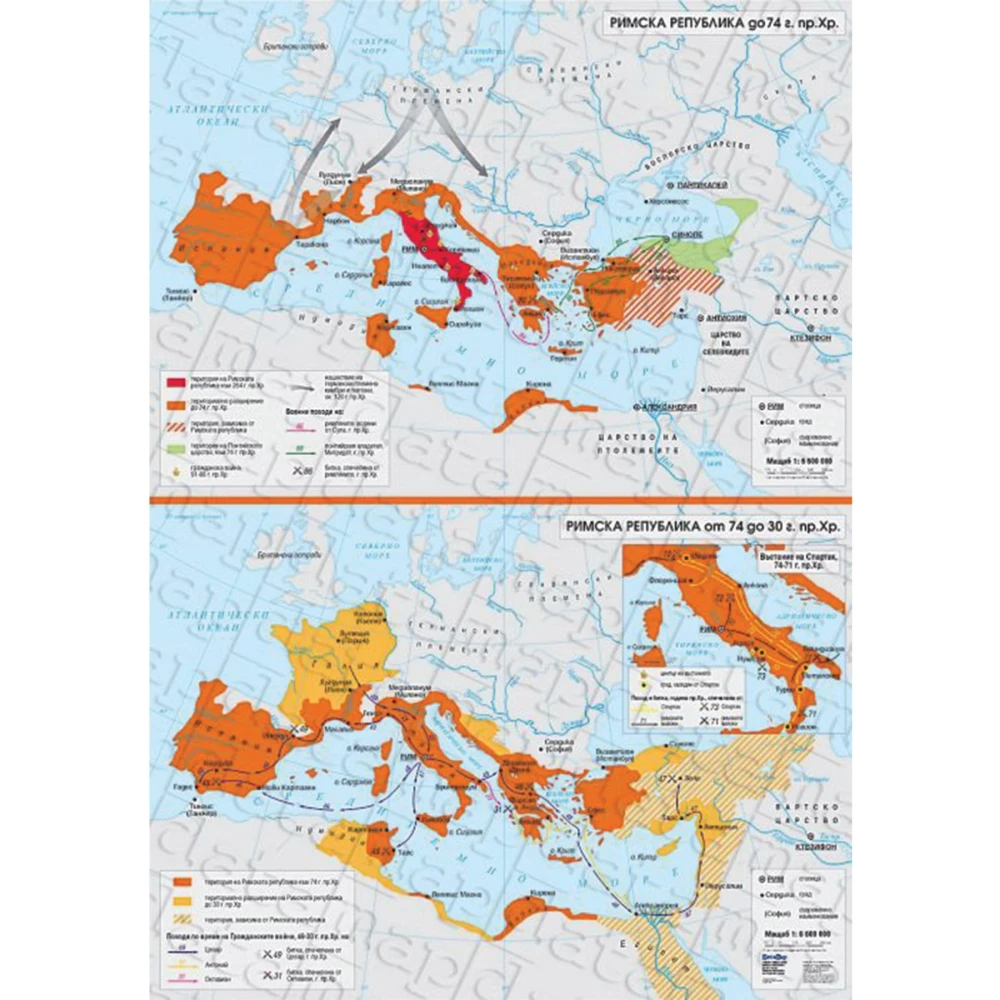 Карта Римска република до 74 г. пр. хр. от 74 до 30 г. пр. хр.