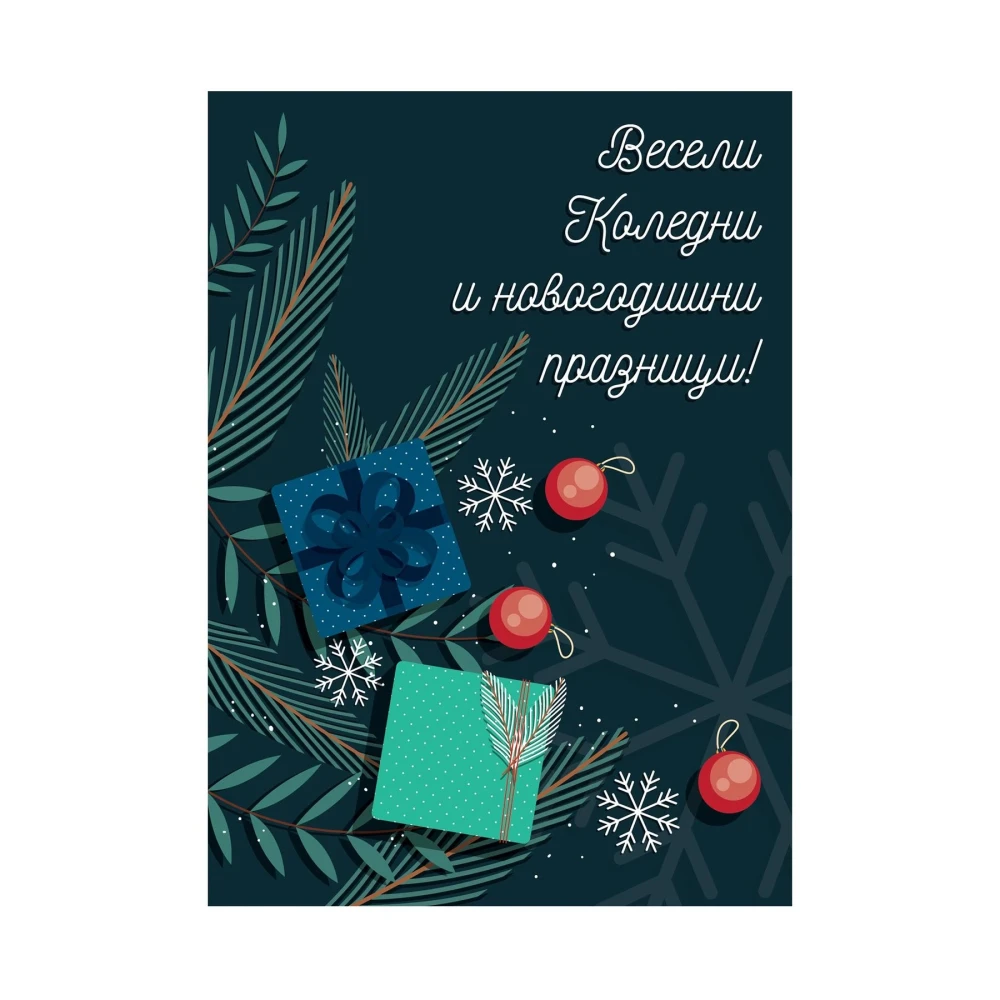 Коледна картичка с плик и дизайн "Подаръци".