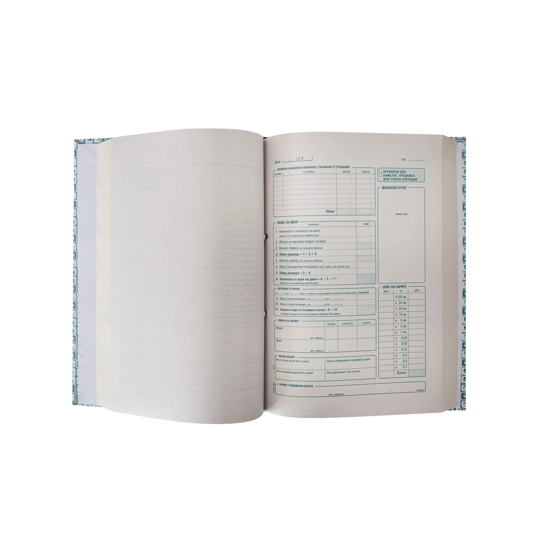 Годишна книга за дневни финансови отчети на касов апарат.