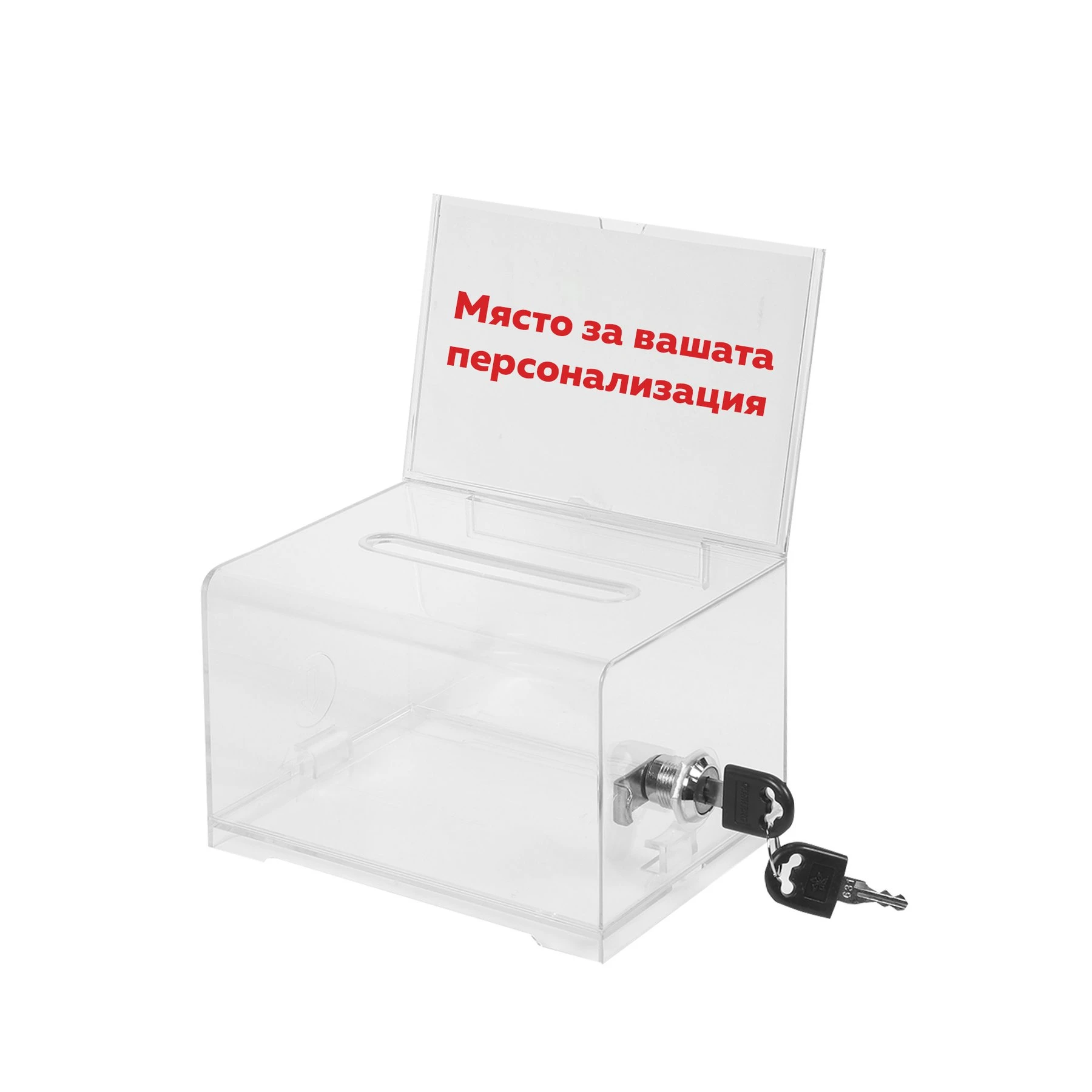 С място за поставяне на информация – формат А6 и ключалка.