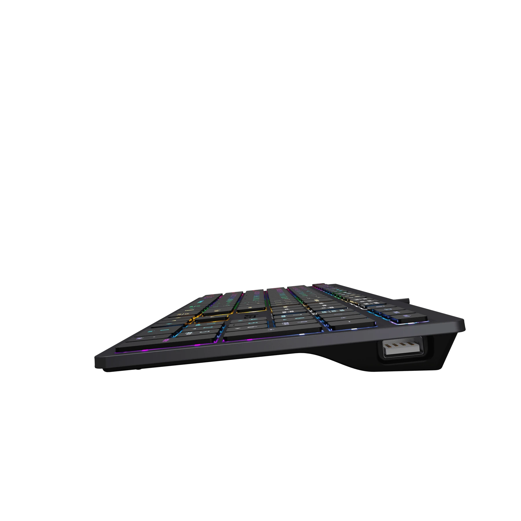 USB хъб с 2 допълнителни USB порта за удобно свързване или зареждане на допълнителни устройства директно от клавиатурата.