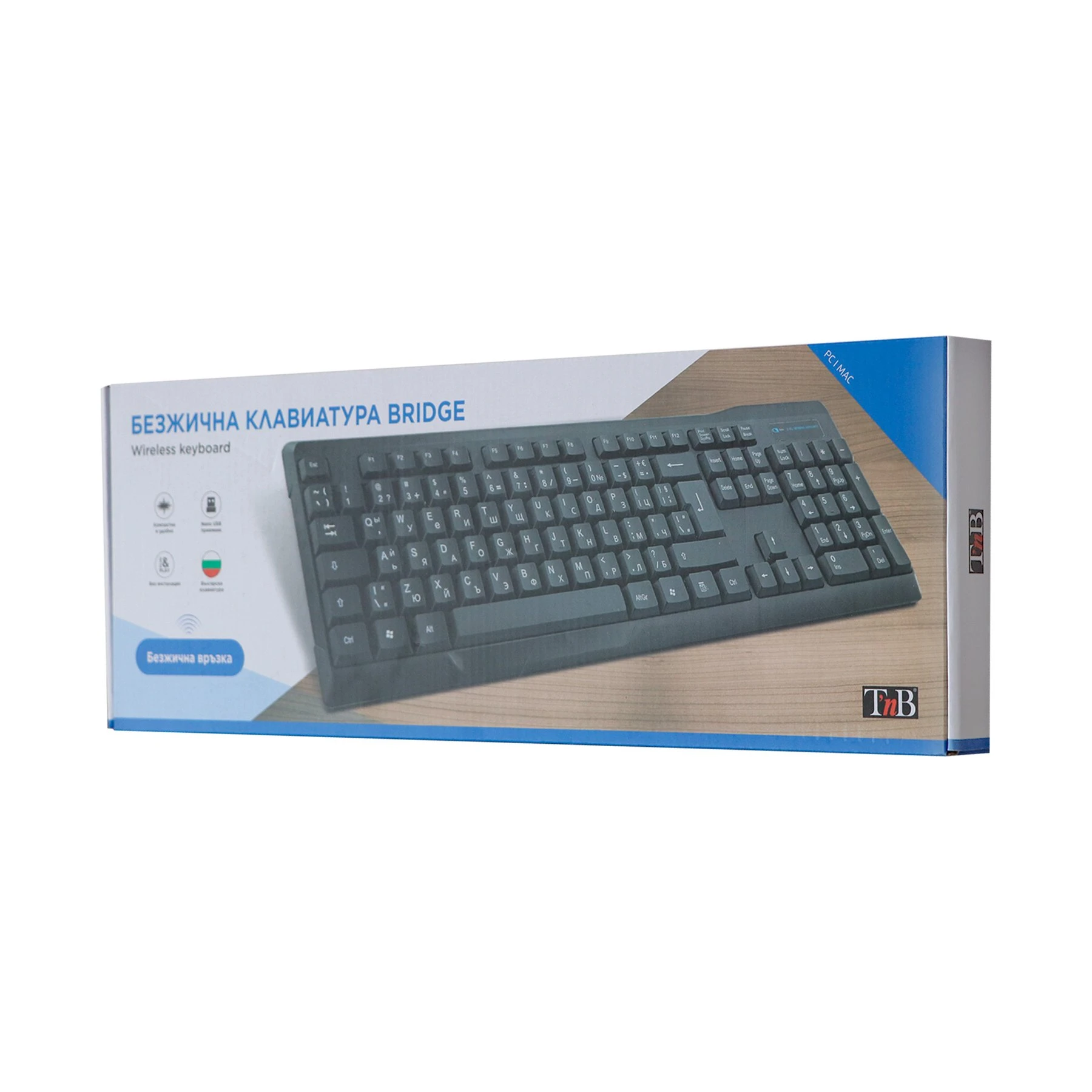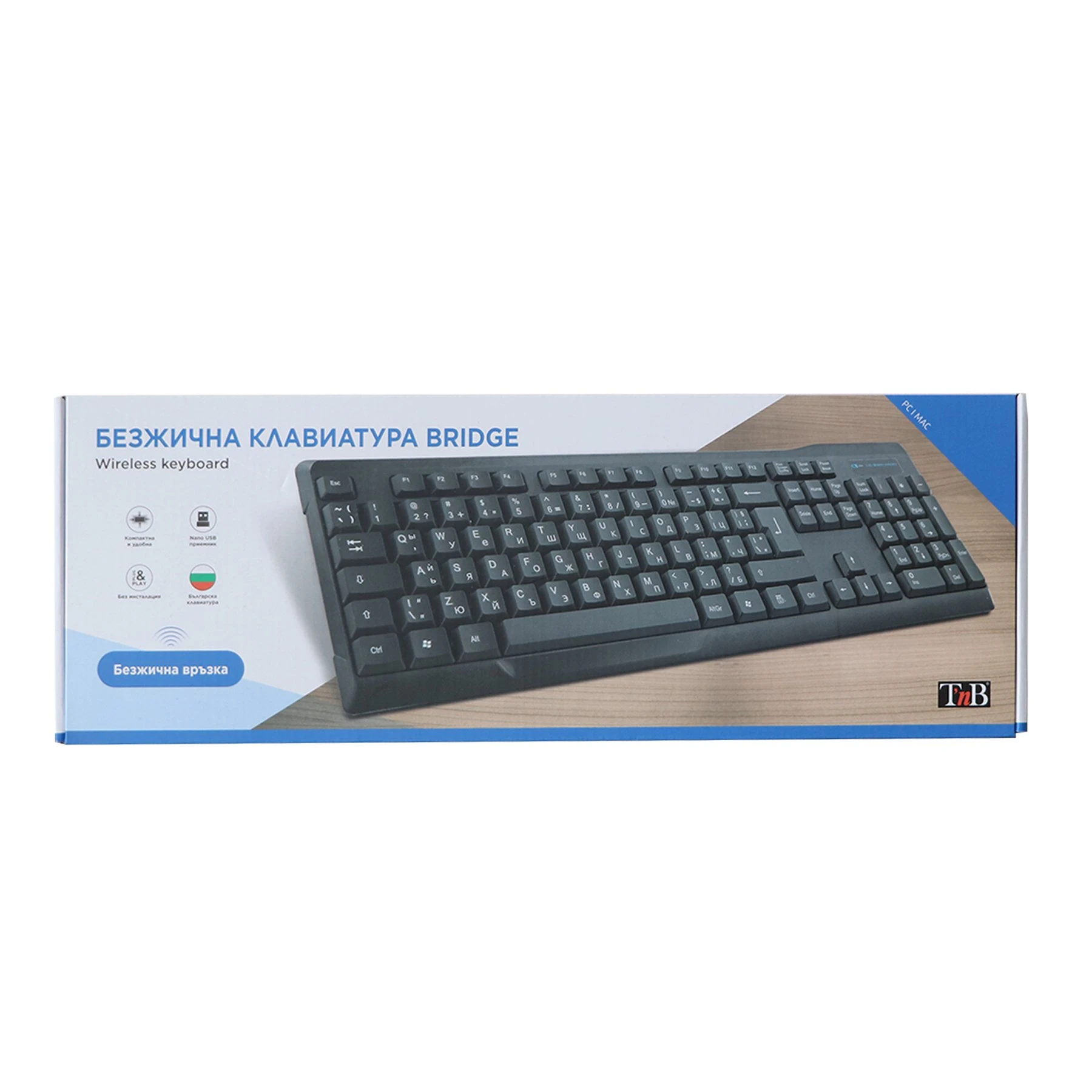 Клавиатура TNB Bridge, безжична, с кирилизация, черна, 104 бутона