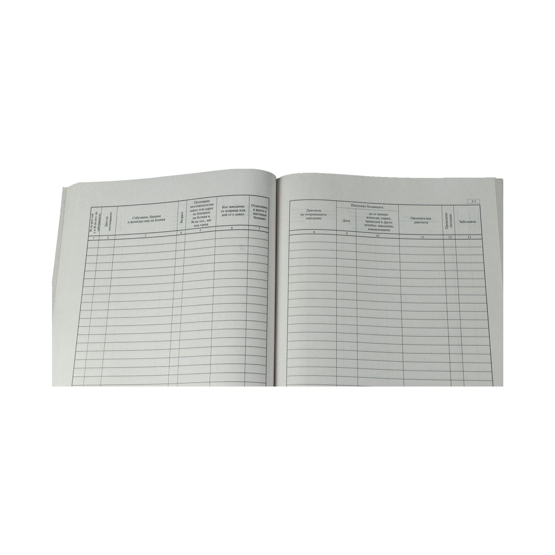 Книга за приетите болни в болница.