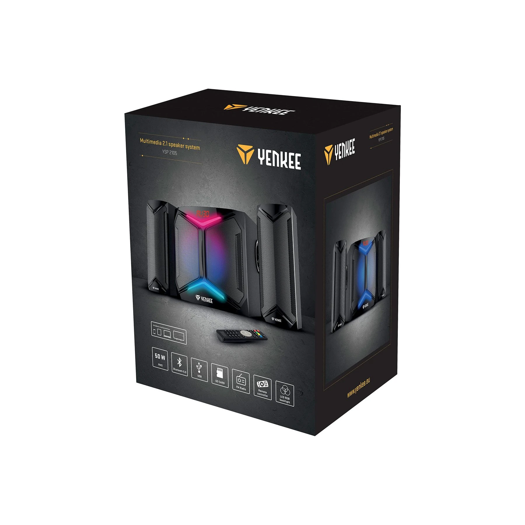 Колони за компютър Yenkee YSP 2105, 3.5 mm жак 2.1, 50 W, 40 - 20000 Hz, черни