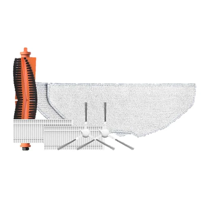Комплектът включва: - Основна четка: ефективно абсорбира мръсотия, прах, косми и други. - Странична четка, 2 броя: достига до ъглови зони и помага на основната четка да събира по-добре косми и мръсотия. - Високоефективен филтър, 2 броя: поддържа мощното засмукване на прахосмукачката на робота, като същевременно ефективно филтрира събрания прах. - Кърпа моп, 2 броя: може да се пере и да се използва многократно. Предназначена да абсорбира течност и да премахва петна по пода.
