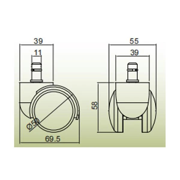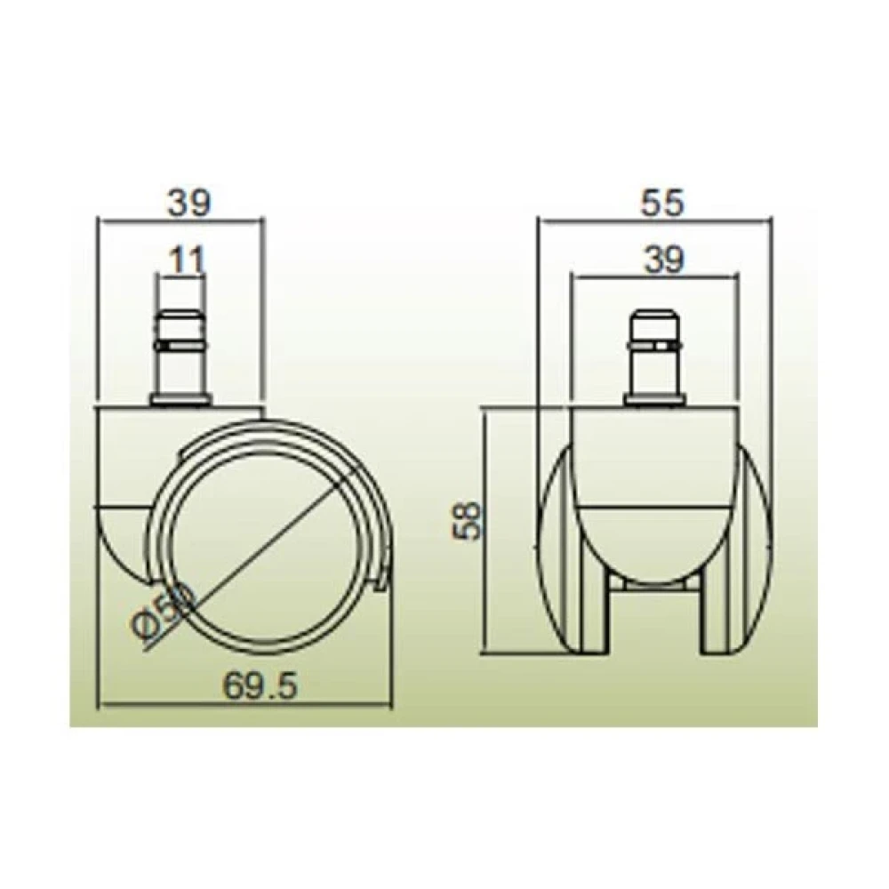Диаметър на колелата: ø50 mm.
