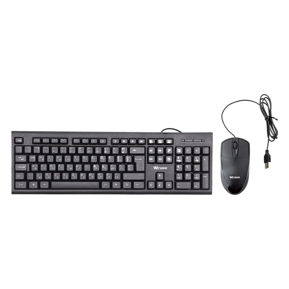 Комплект Wesdar - клавиатура и мишка KM5, кирилизирана, с кабел 1.5 m, USB, 3 бутона на мишката, 104 бутона на клавиатурата, черни