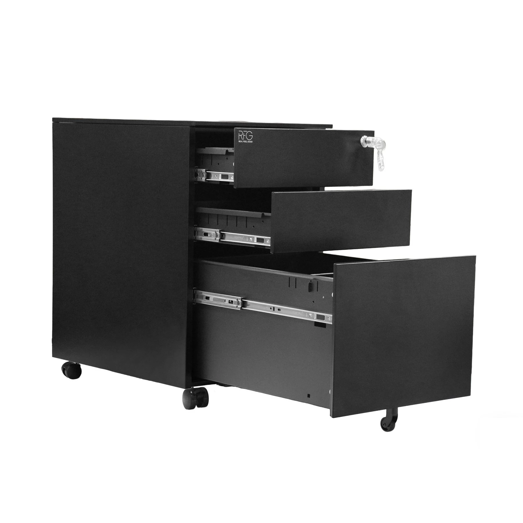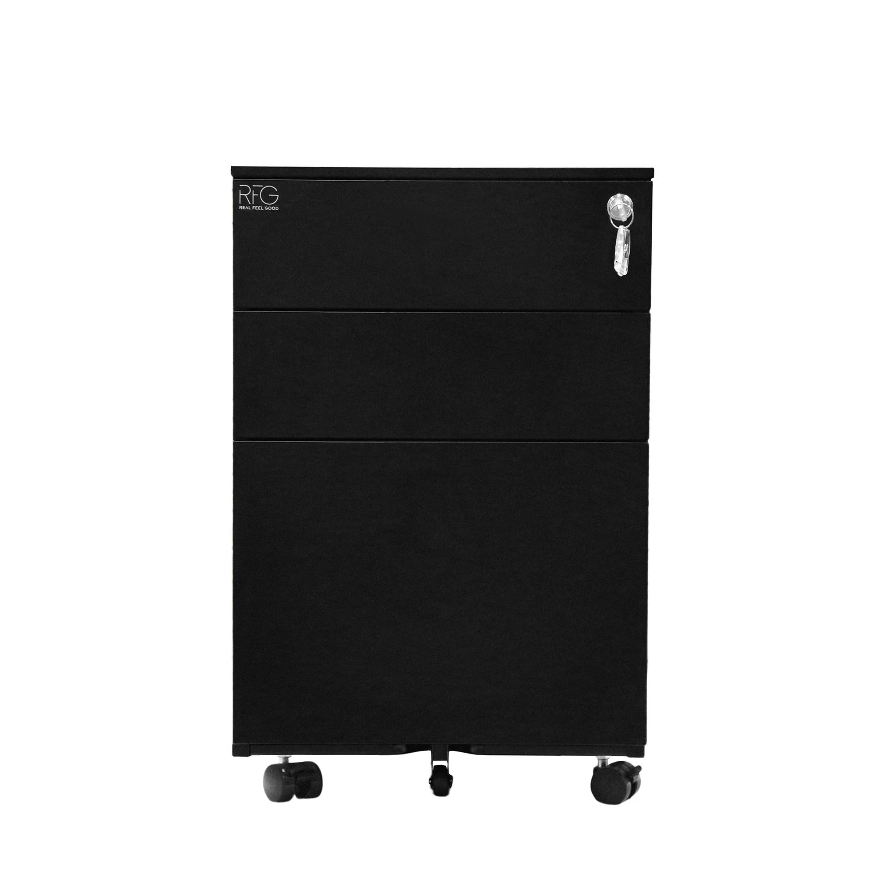 Контейнер RFG, метален, с три чекмеджета и ключ, 390 х 520 х 600 mm, черен