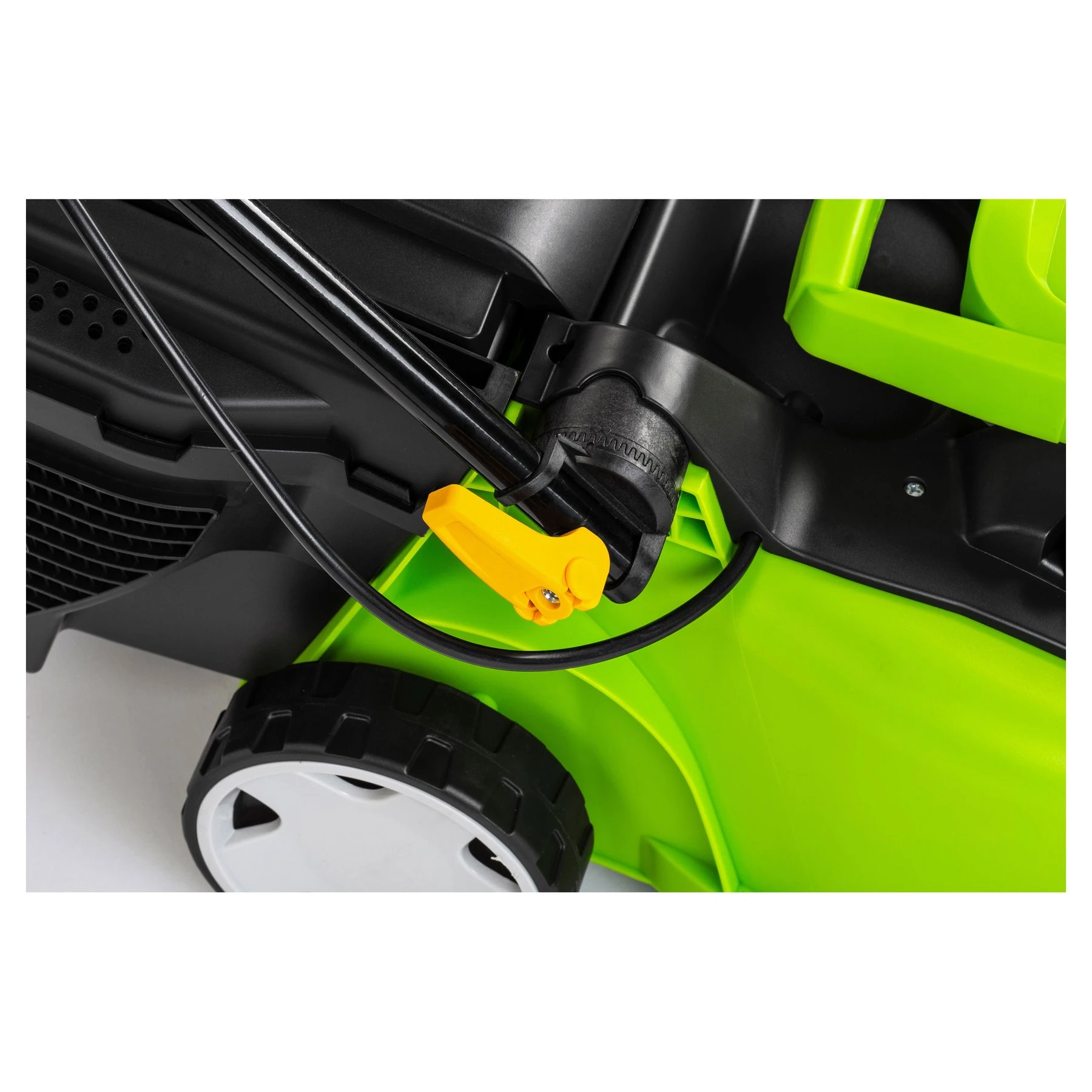 Косачката предлага ширина на косене 32 cm и регулируема височина на рязане в 3 позиции – 20, 38 и 56 mm, което позволява оптимален резултат според сезона и типа тревна настилка.