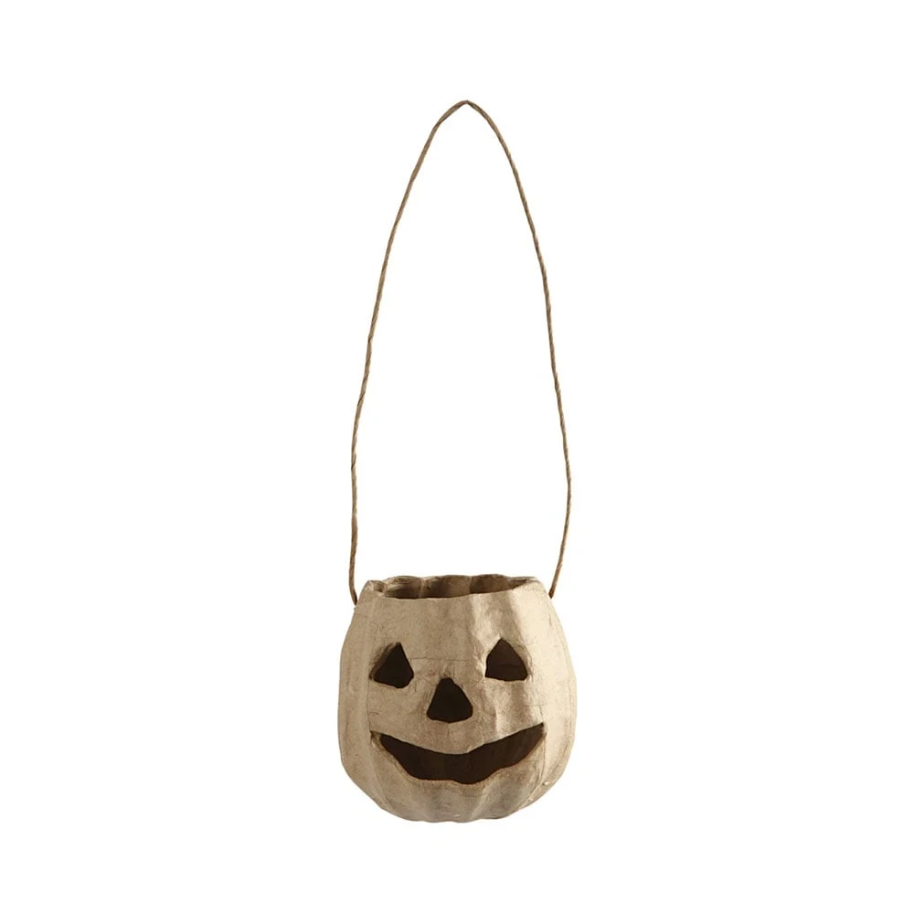 Ръчно изработена тиквена глава с форма на малка отворена кошница с връв за закачане. Добавете свещ и използвайте като фенер.