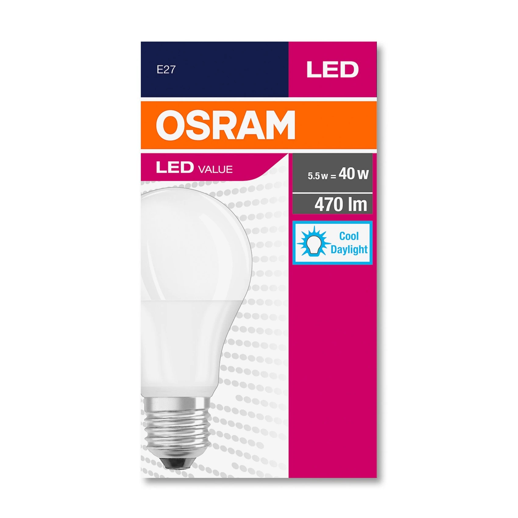 LED крушка Osram с цокъл E27 и мощност 6W, предлагаща яркост от 470 lm.