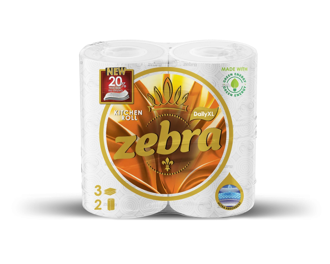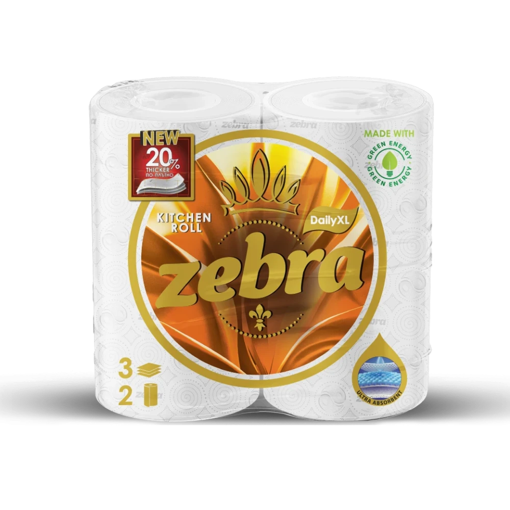 Кухненска ролка Zebra Daily XL, трипластова, 100% целулозна, 2 броя