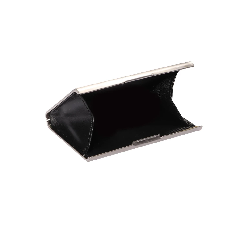 Визитник, тип кутийка от метал, с черни кожени страници.