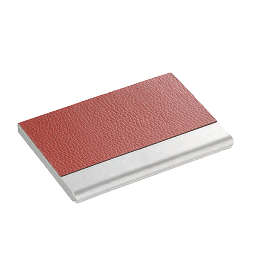 Визитник, тип кутийка от метал и червена изкуствена кожа.