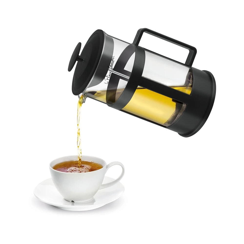Каната съдържа неръждаем преса за чайове и смляно кафе.