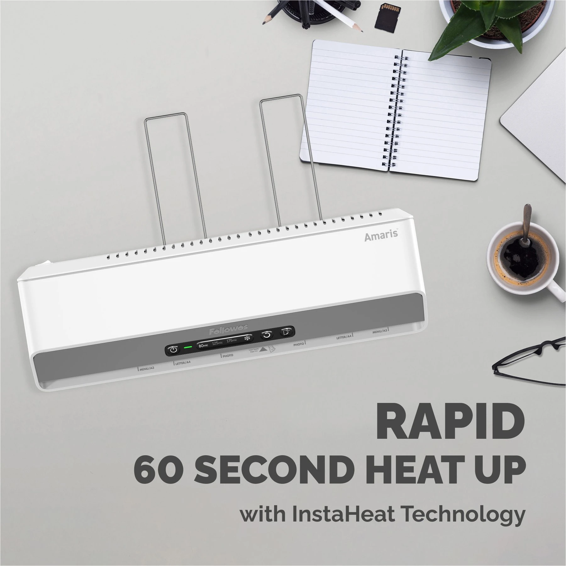 Ламинатор Fellowes Amaris, A3, за фолио до 175 микрона, бял, време за загряване 1 min, валове 6 броя