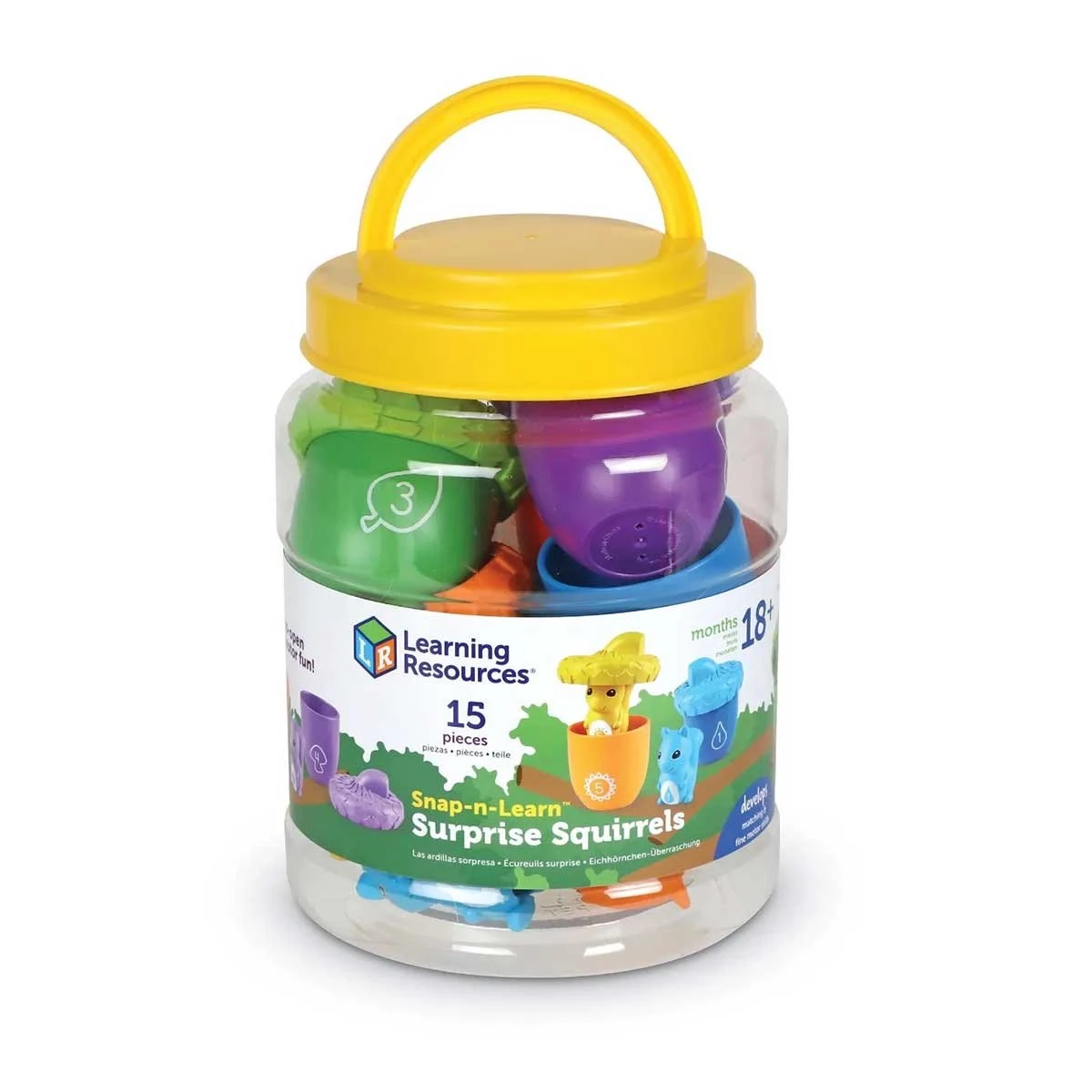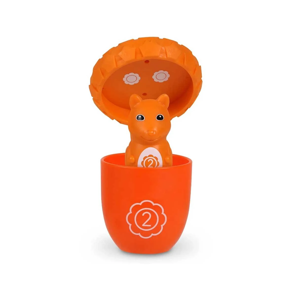 Децата трябва да свалят капачетата на петте жълъда, за да открият очарователната катеричка, която се крие във всеки от тях. Така те изграждат основни умения за броене и сортиране с игра на криеница.
