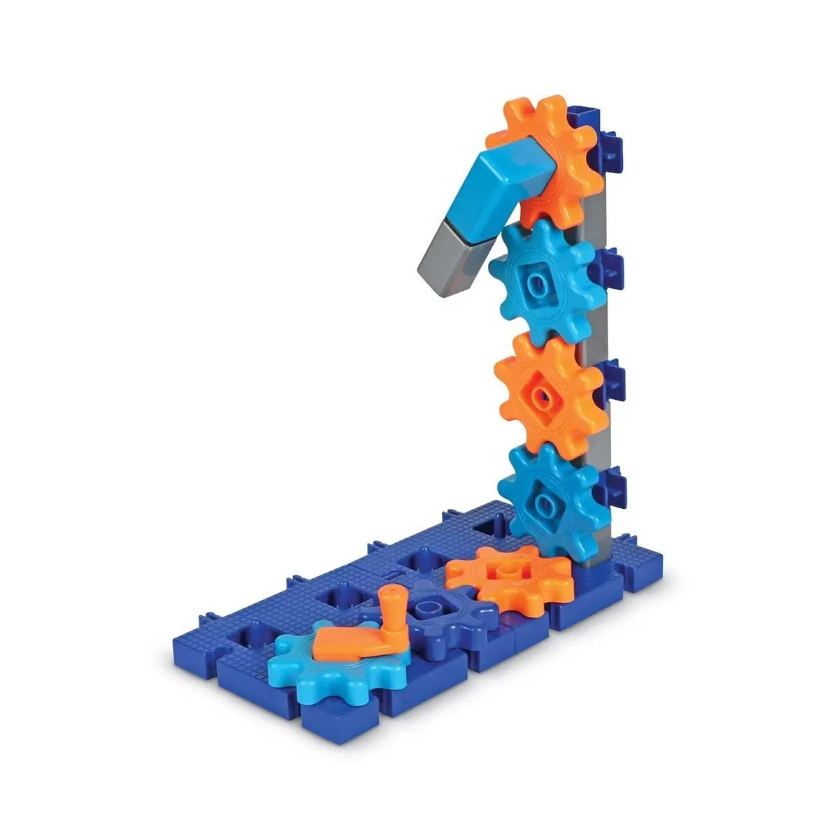 Този STEM строителен комплект от 60 части съдържа всички зъбни колела, ролки, ремъчни задвижвания и конектори, необходими за изграждането на прости машини, както и 10 карти с дейности, пълни с предизвикателства.
