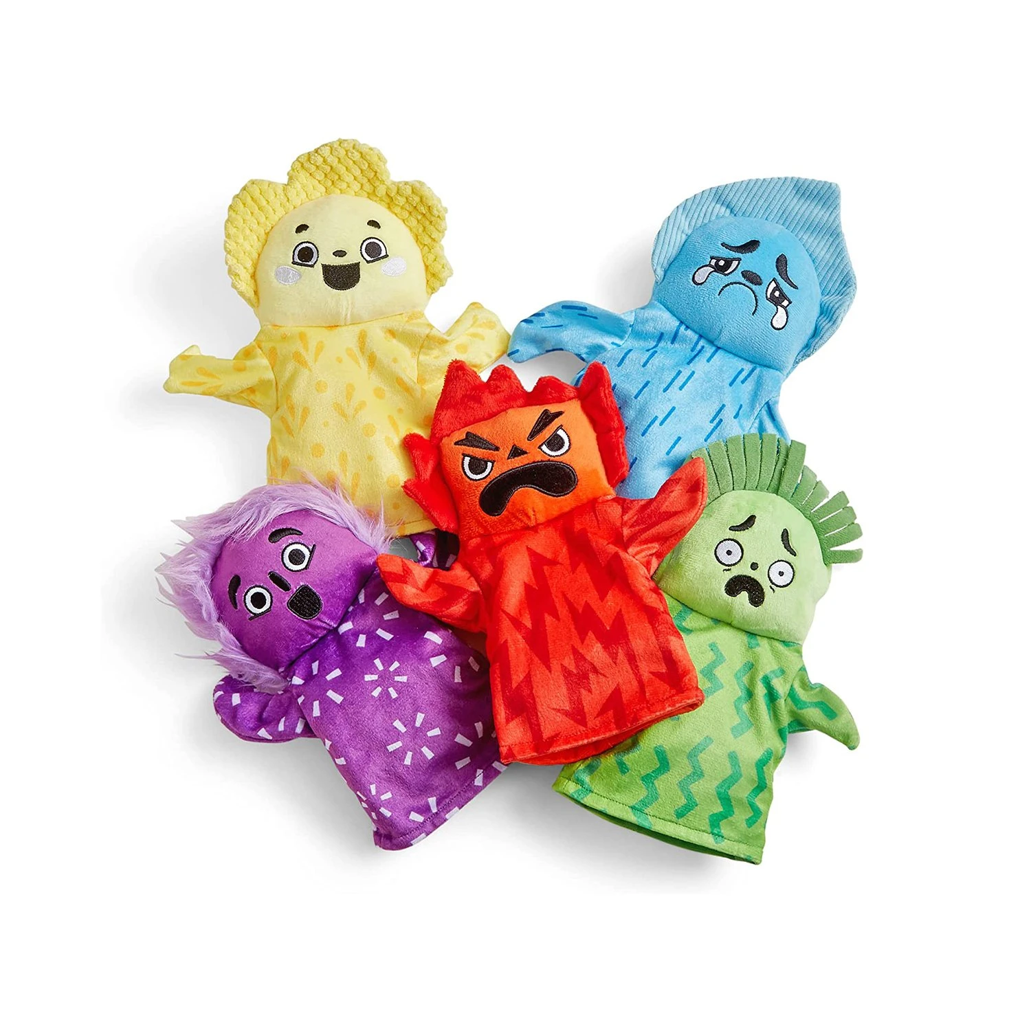 Независимо дали са щастливи, тъжни, изненадани, ядосани или уплашени, тези 5 цветни ръчни кукли помагат на децата да изследват чувствата и емоциите чрез различни игри с истории.