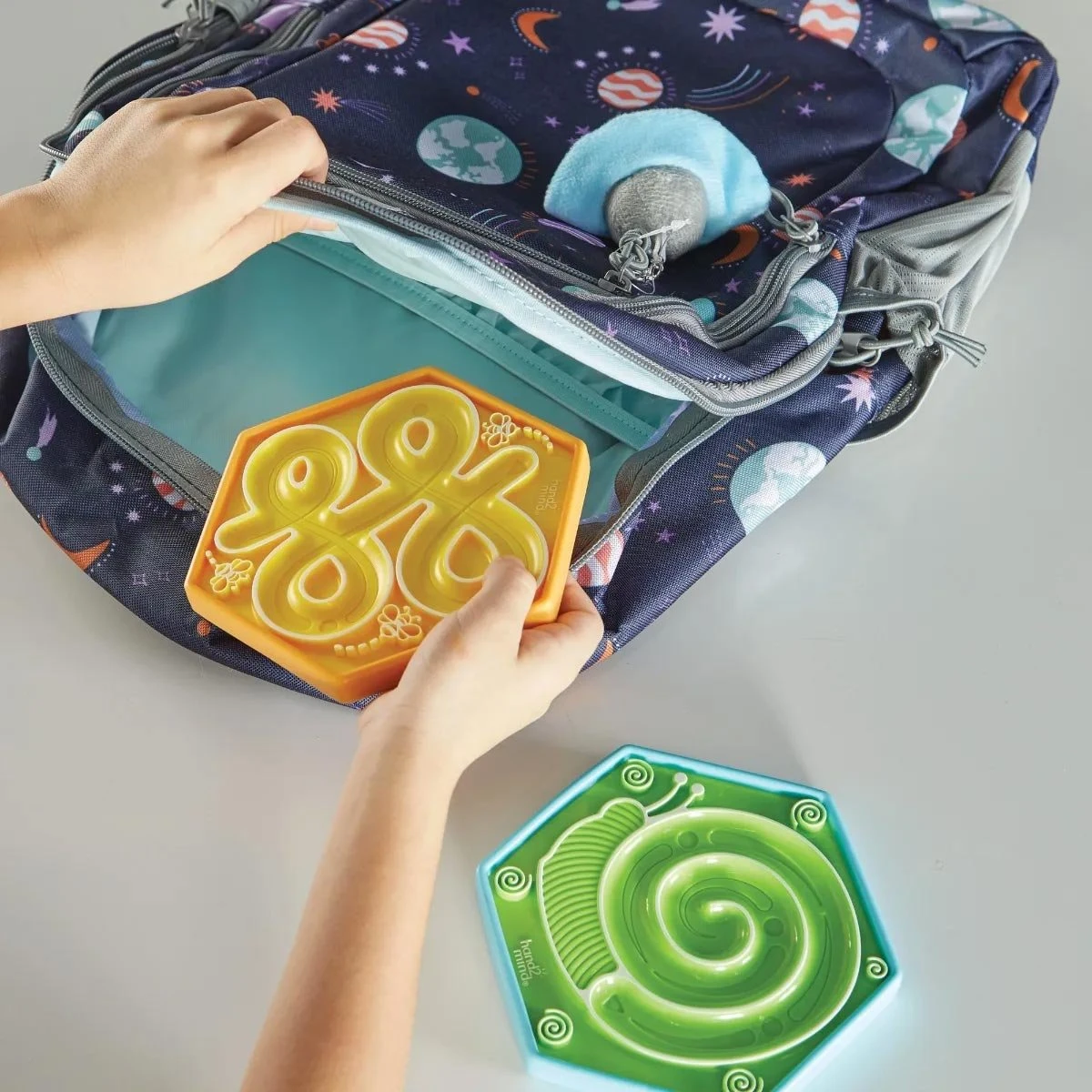 Развийте у децата умения за осъзнатост и саморегулация с комплекта за сензорно дишане и спокойствие, вдъхновен от природата. Този тактилен сет включва 2 двустранни шестоъгълни дъски (общо 4 упражнения), които насочват вниманието на децата чрез водени модели за дишане и проследяване с пръст.