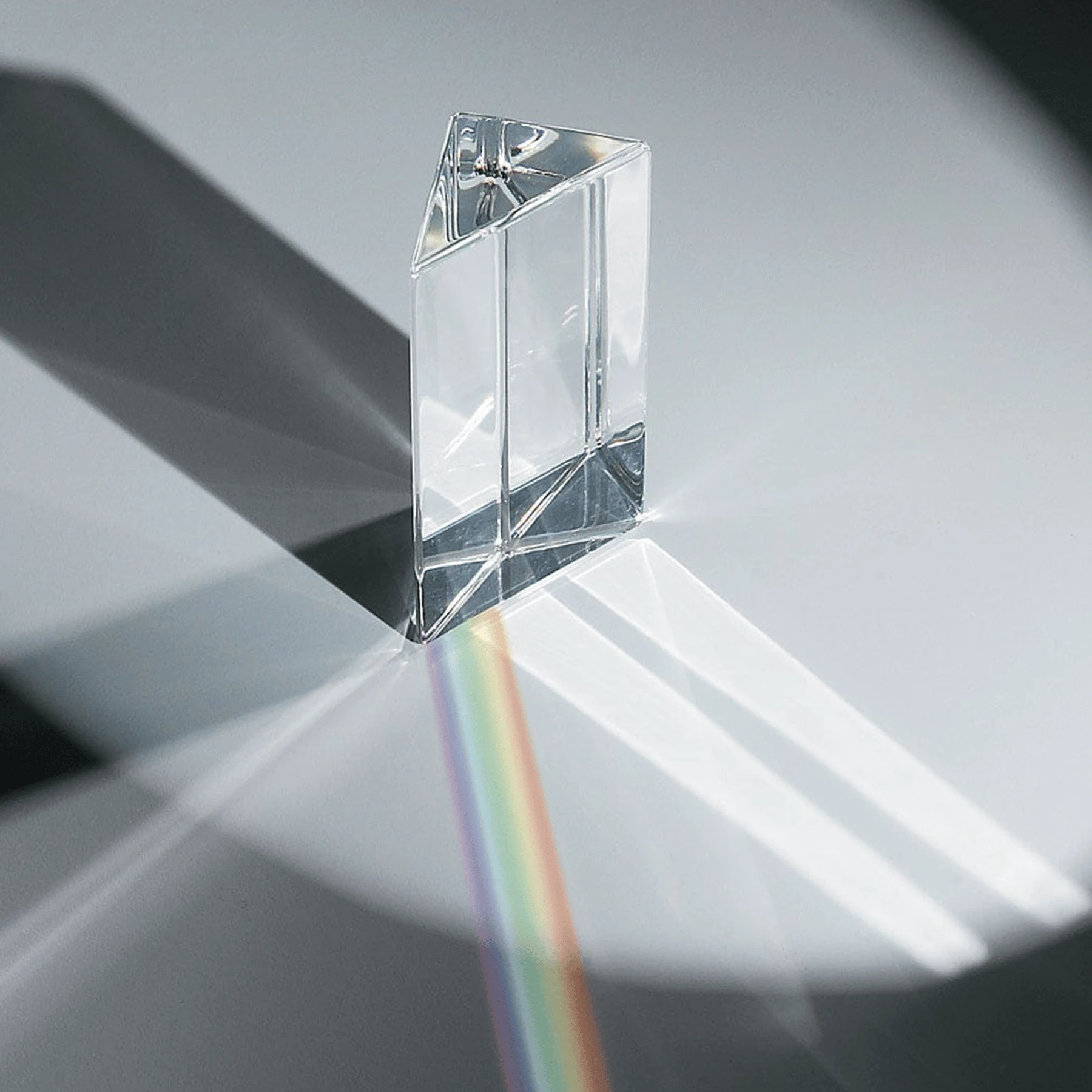 Оптична триъгълна призма, която служи за пречупване на светлината.