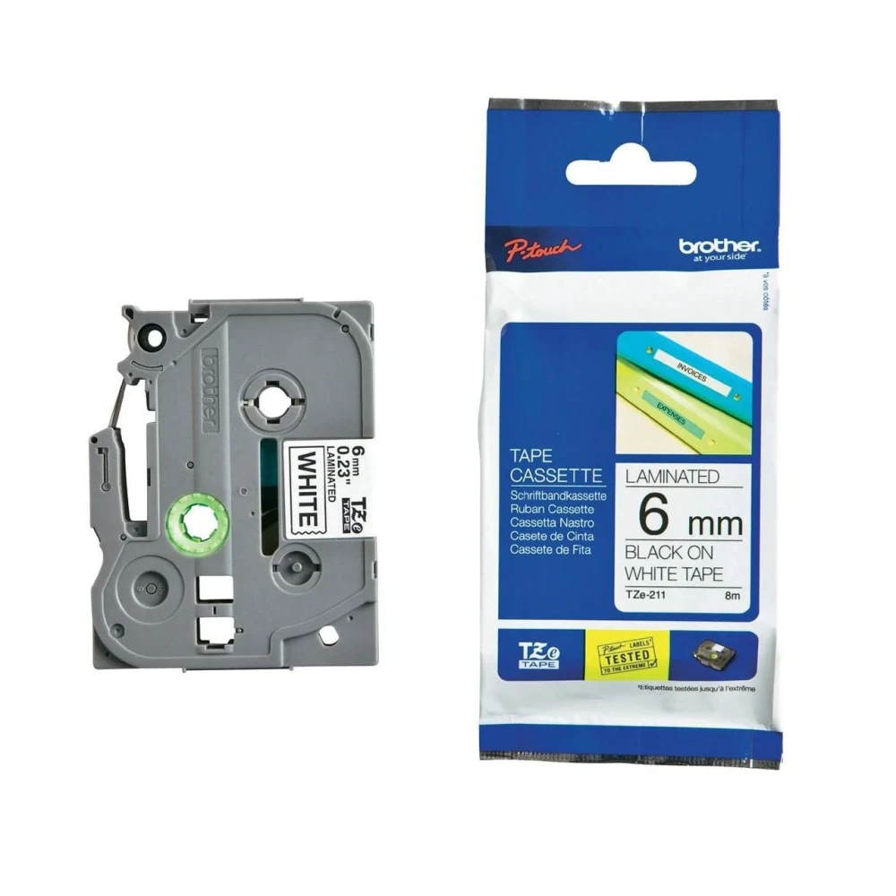 Лента Brother TZe-211, 6 mm x 8 m, черен печат върху бяла лента