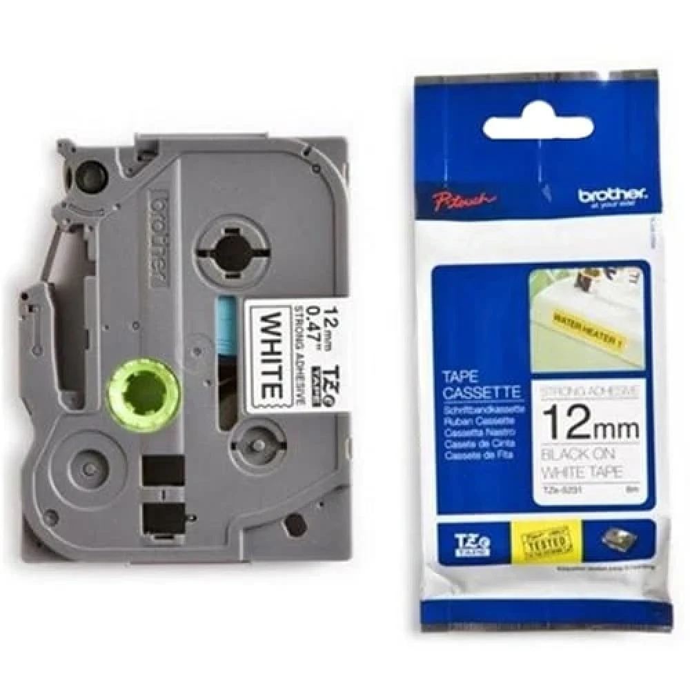 Лента Brother TZES231, 12 mm, черен печат върху бяла лента