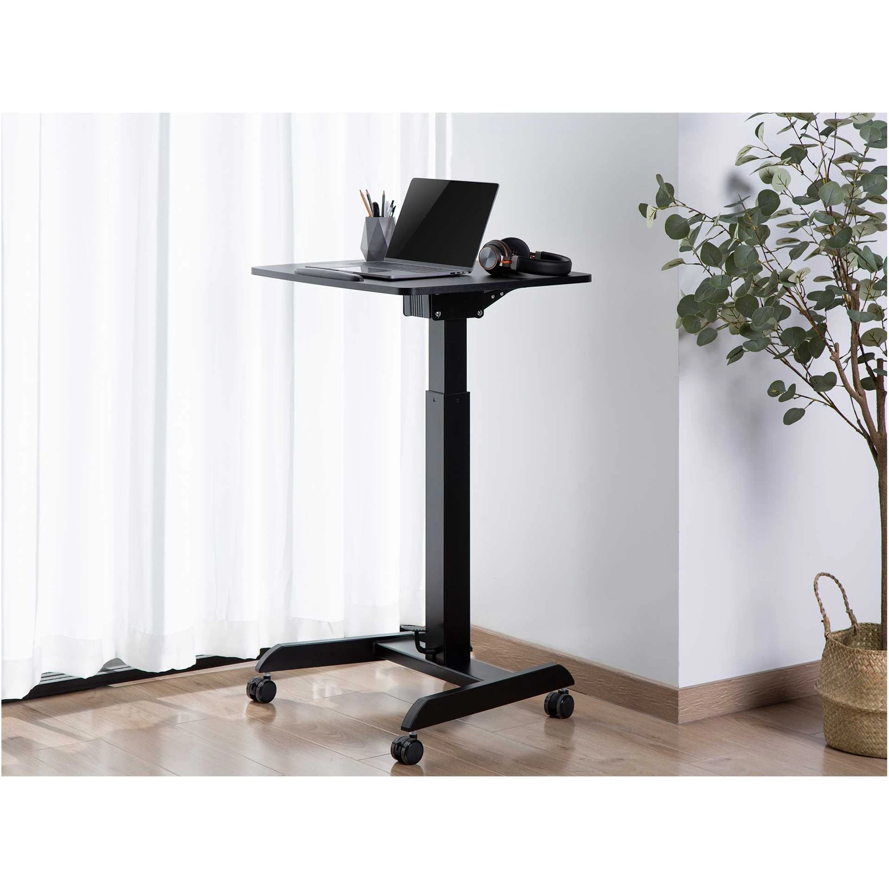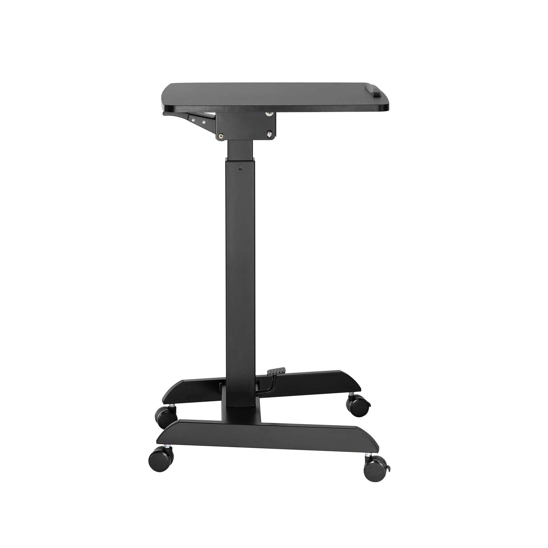 С натискане на пневматичен крачен педал, масата се регулира на височина от 758 до 1128 mm (29.8'' - 44.4''), така че можете да изберете седнало или изправено положение, докато изпълнявате задачите си или изнасяте презентация.
