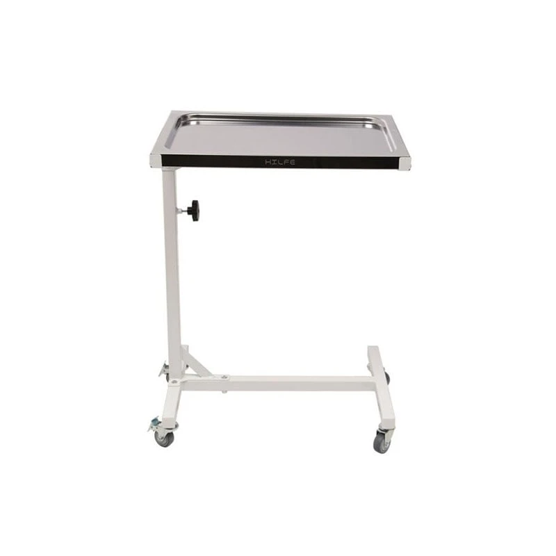 Плотът е изработен от неръждаема щампована стомана, без остри ръбове и с борд, който не позволява падане на инструментите при придвижване на масичката.