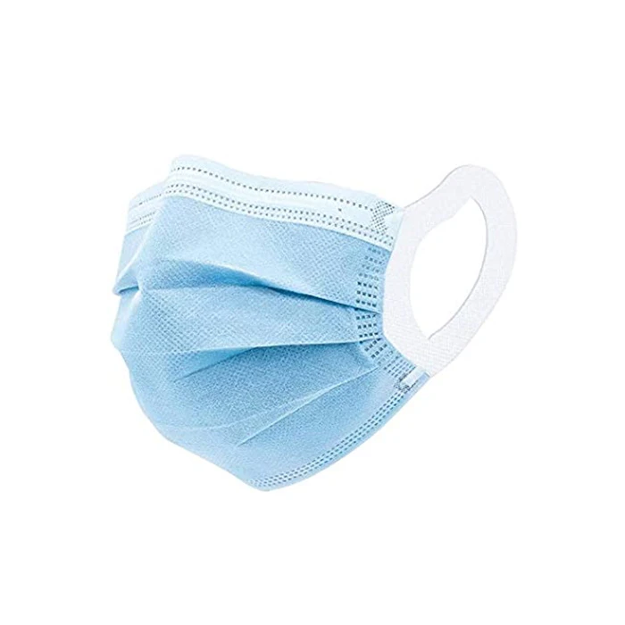 Трислойна предпазна маска за лице, предназначена за еднократна употреба.