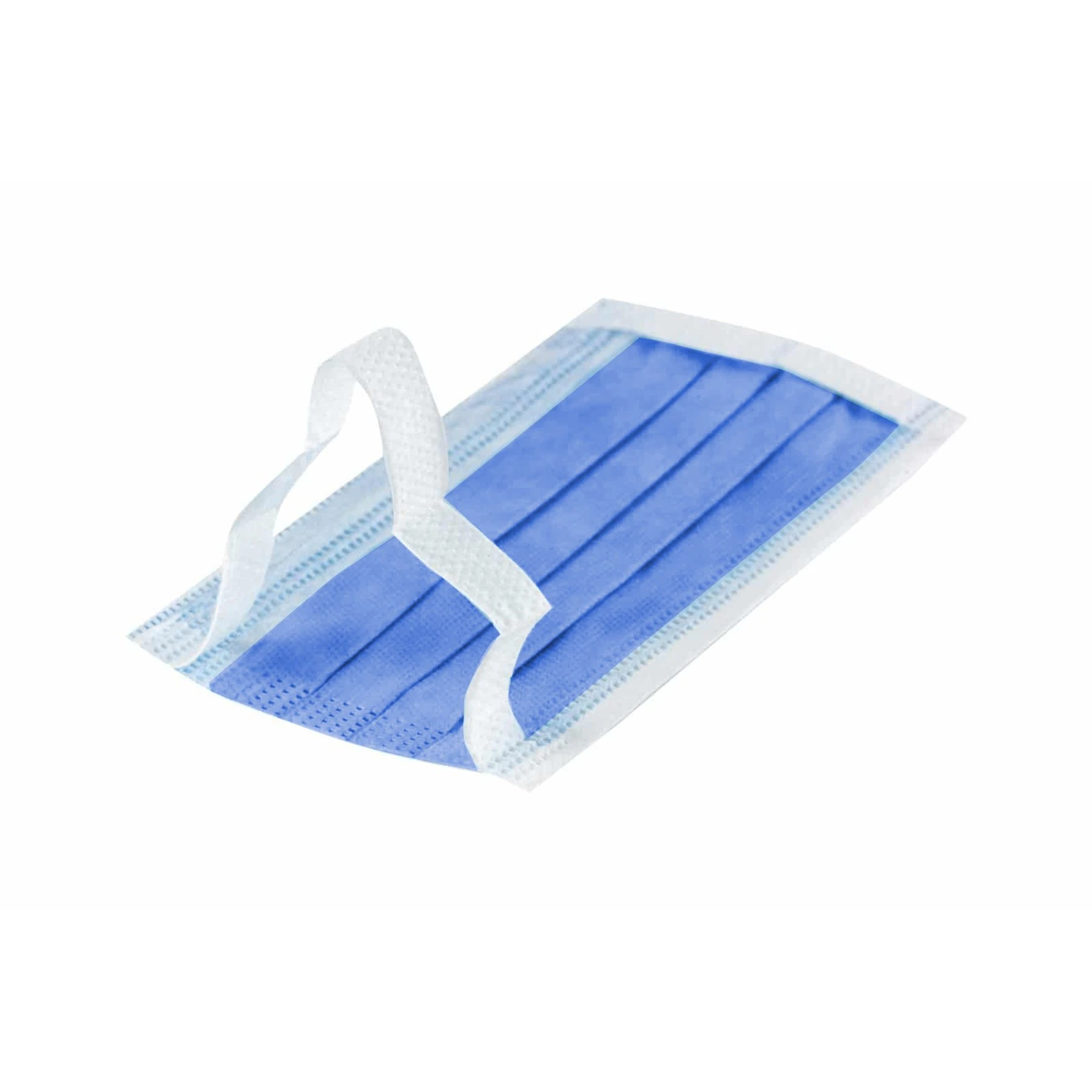 Трислойна предпазна маска за лице, предназначена за еднократна употреба.