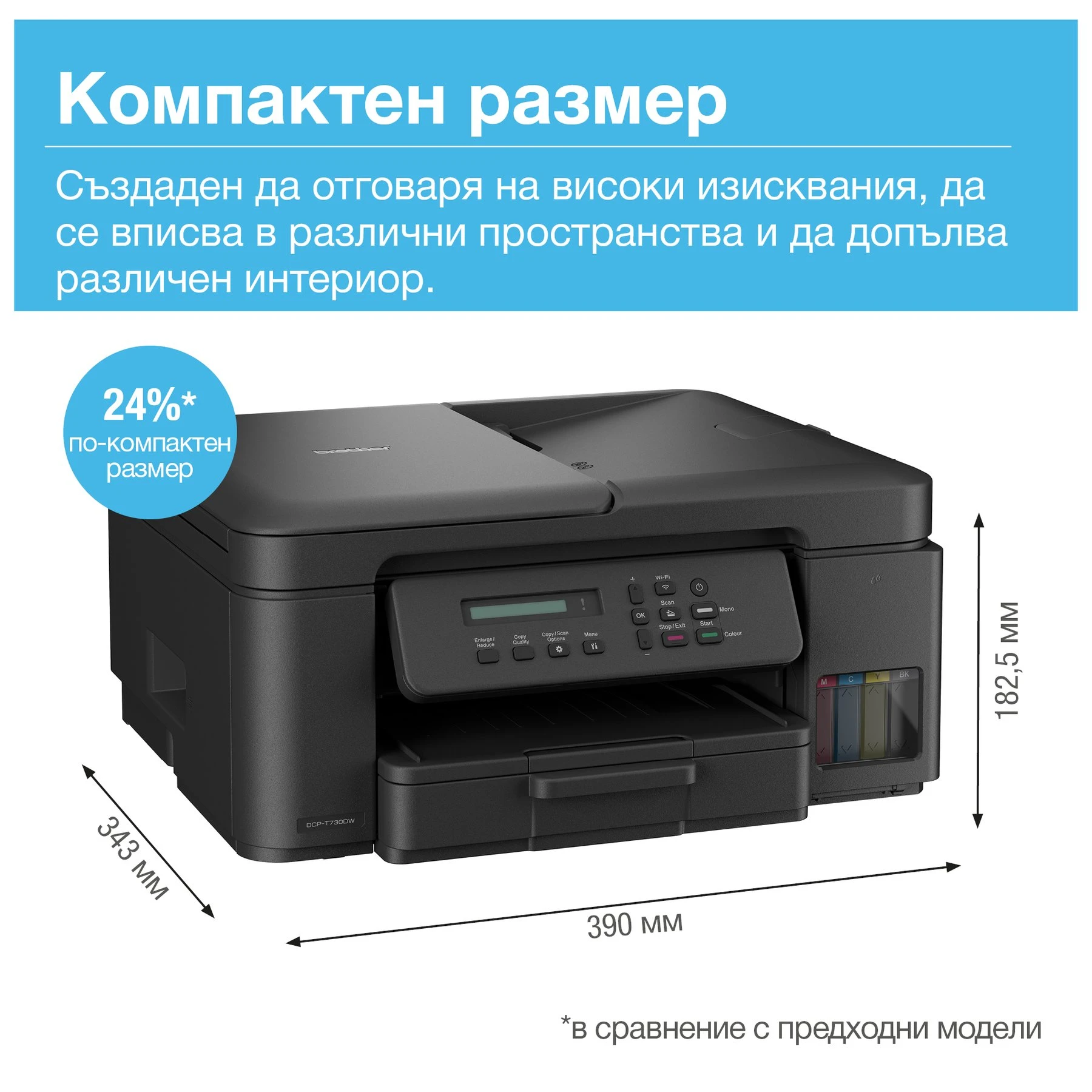 Мастиленоструйно мултифункционално устройство Brother DCP-T730W, 3 в 1, А4, Wi-Fi