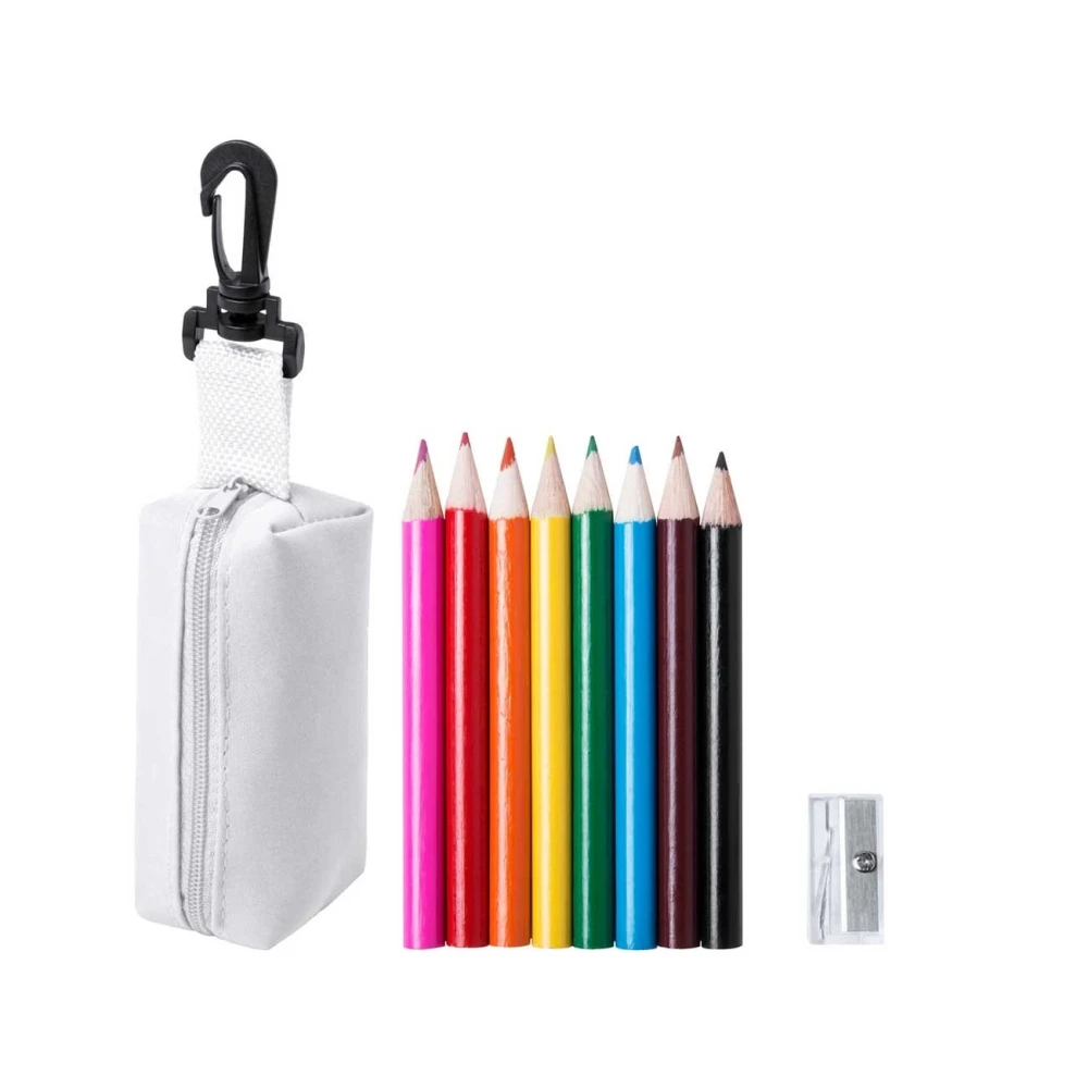 Мини комплект от 8 цветни молива и острилка, в несесер.