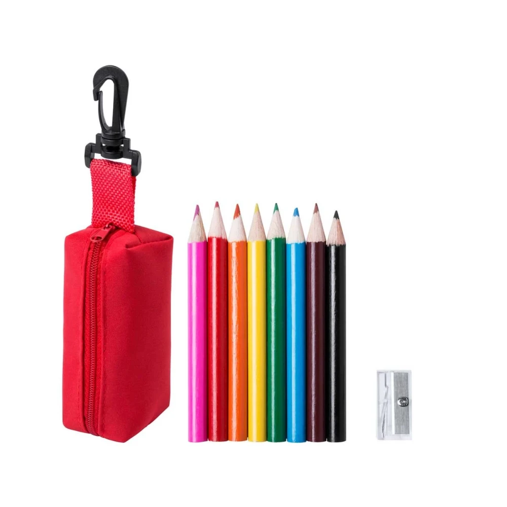 Мини комплект от 8 цветни молива и острилка, в несесер.