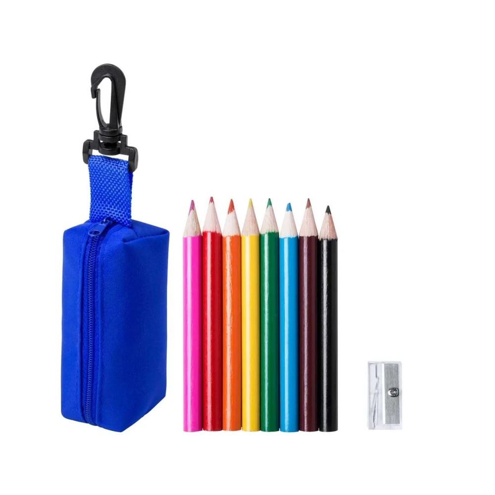 Мини комплект от 8 цветни молива и острилка, в несесер.