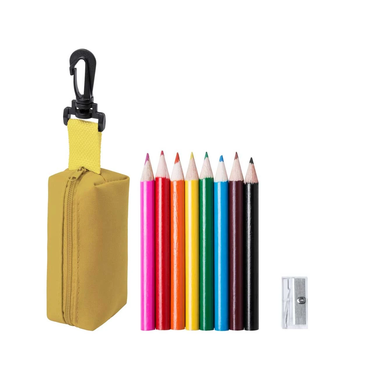 Мини комплект от 8 цветни молива и острилка, в несесер.