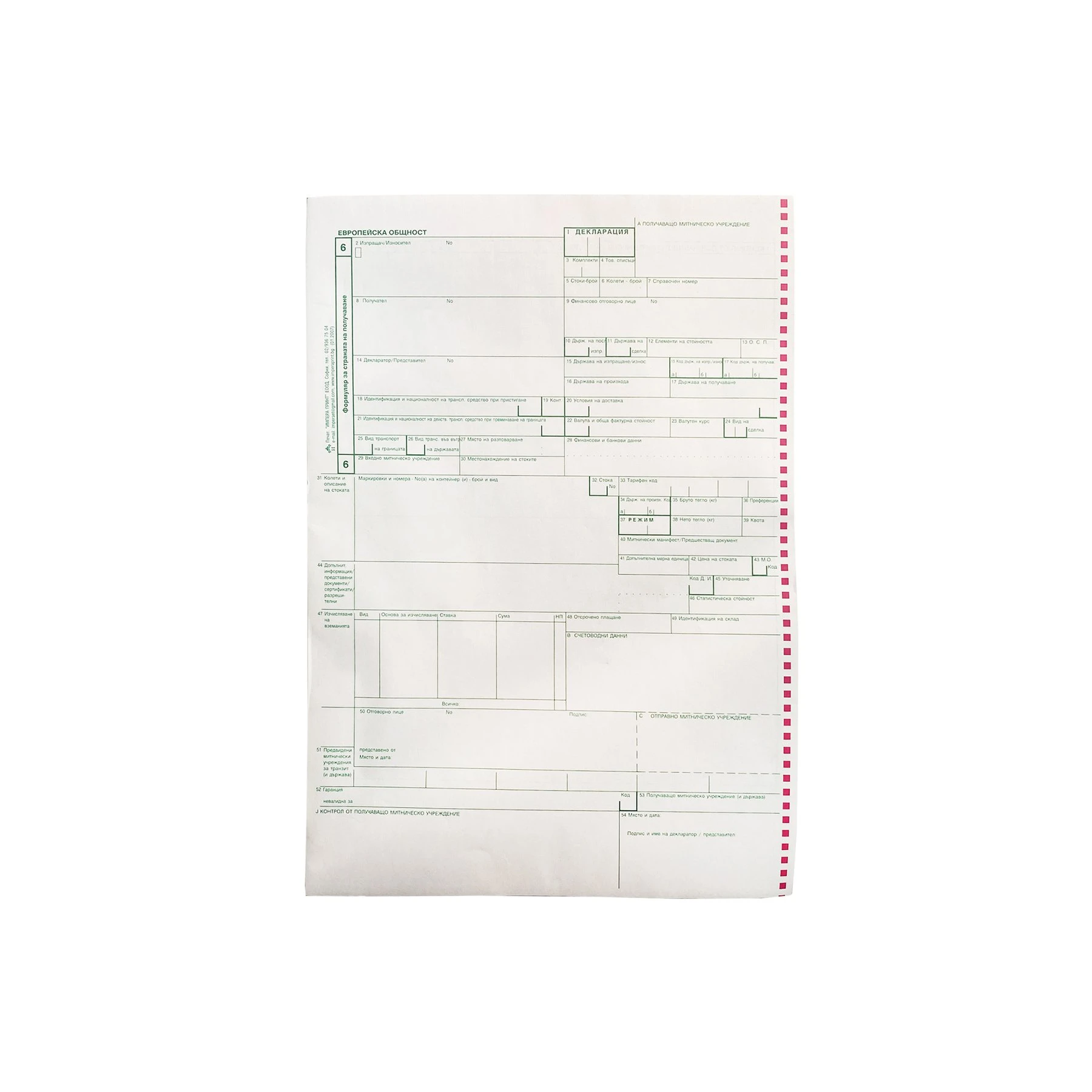Митническа декларация за попълване.