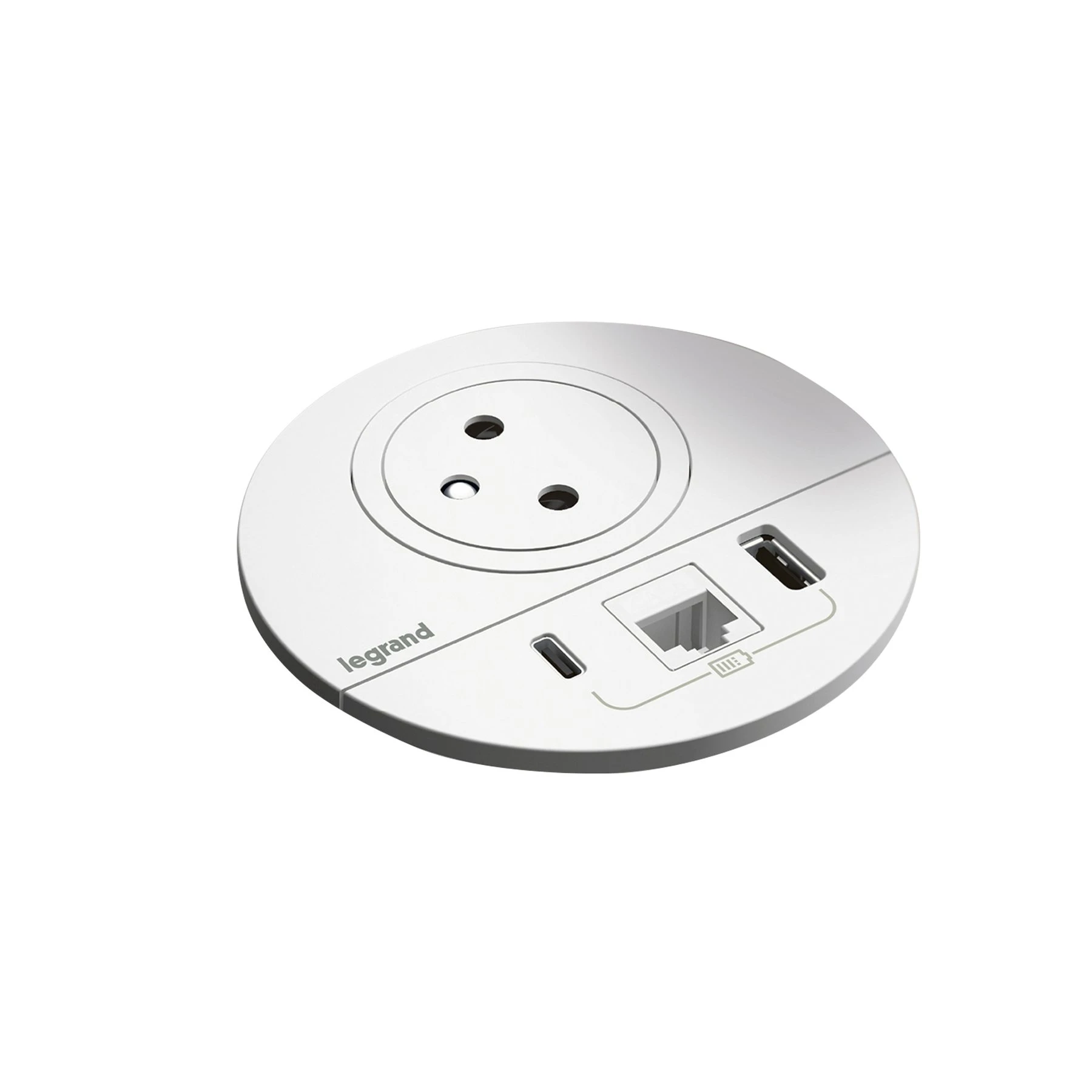 Модул за вграждане Legrand Incara Disq 80, с USB, 1 гнездо, бял