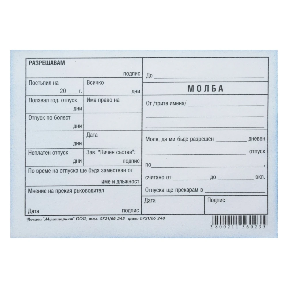 Молба за отпуск, химизирана, 100 листа