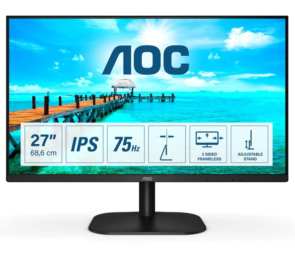 Монитор AOC 27B2DA, 27'', LED, 1920 x 1080, 250 cd/m2, 4 ms, HDMI, VGA, IPS, 16:9, 75 Hz, черен