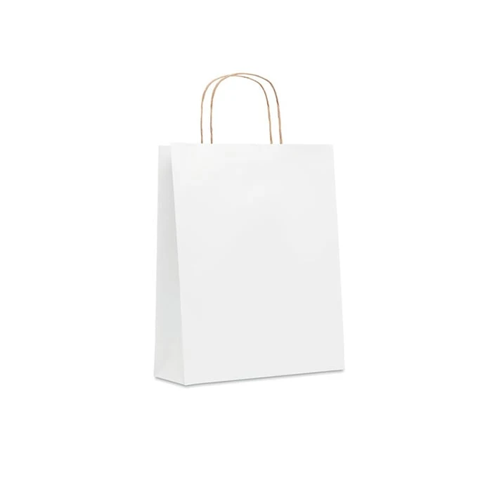 Подаръчна торбичка със среден размер, произведена от 70% рециклирана хартия (90 g/m2).