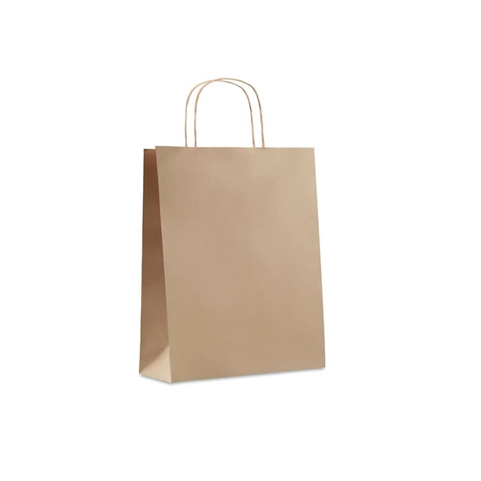 Подаръчна торбичка със среден размер, произведена от 70% рециклирана хартия (90 g/m2).