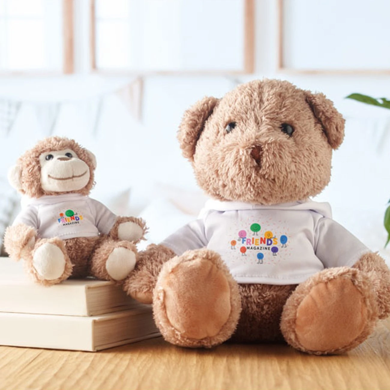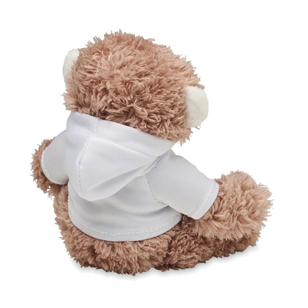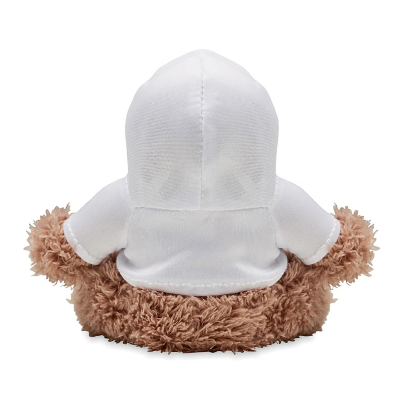 Плюшена маймуна, облечена в пуловер с качулка.