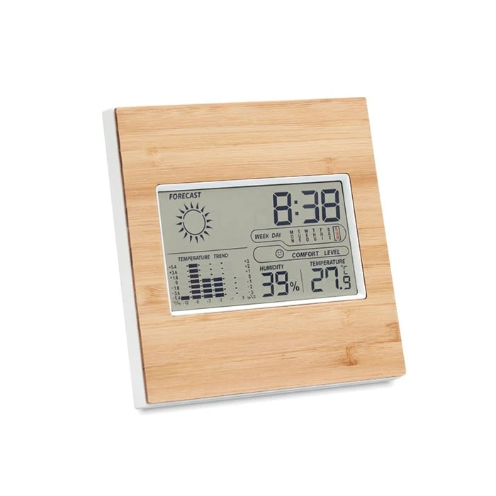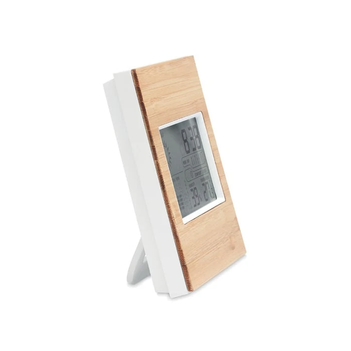 Метеостанция, с преден панел, изработен от бамбук и многофункционален термометър.