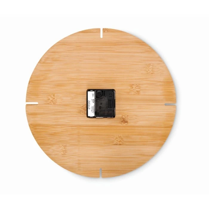Стенен часовник от бамбук с аналогов дисплей.