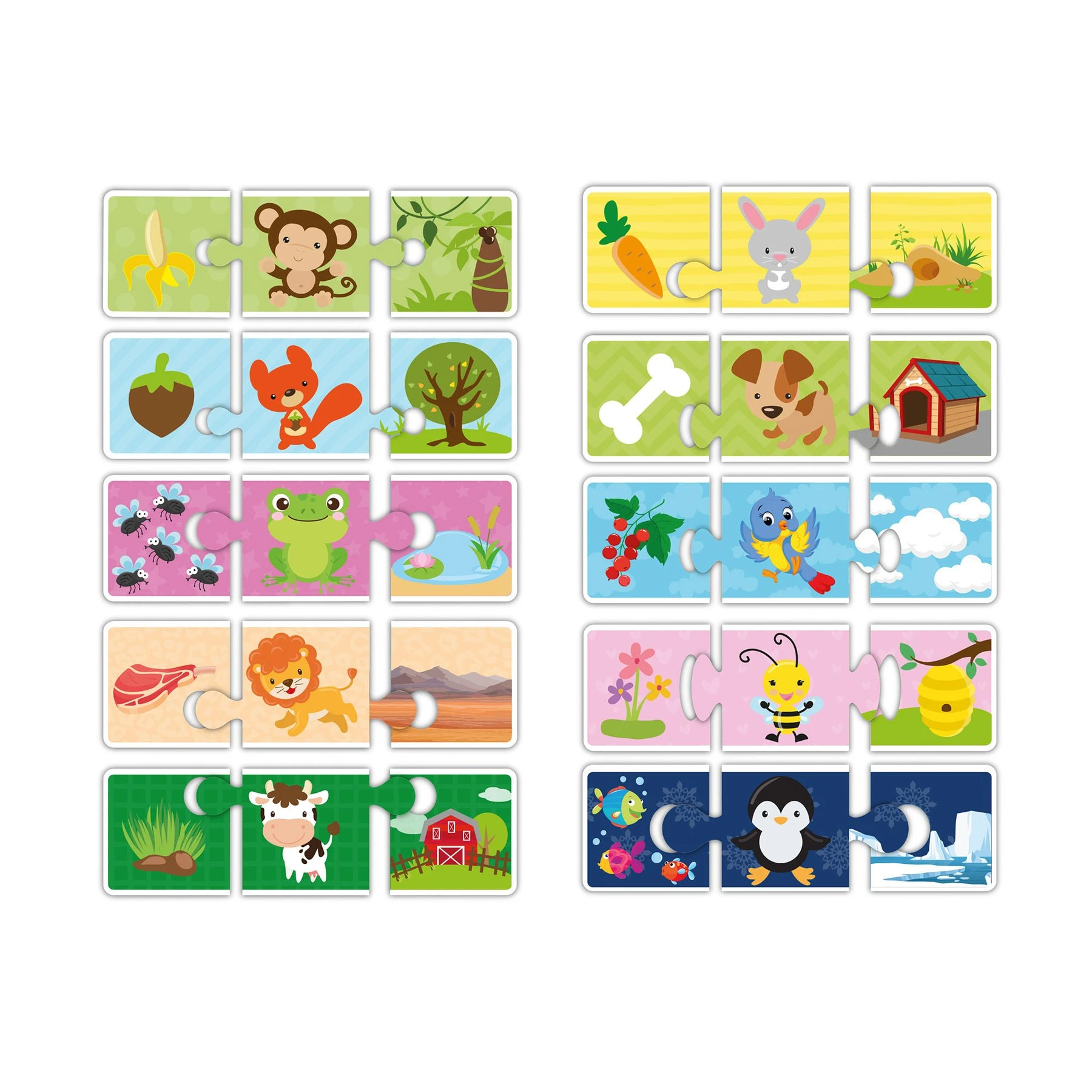 Образователна игра за свързване на животни с храната, която ядат и местата, на които живеят.